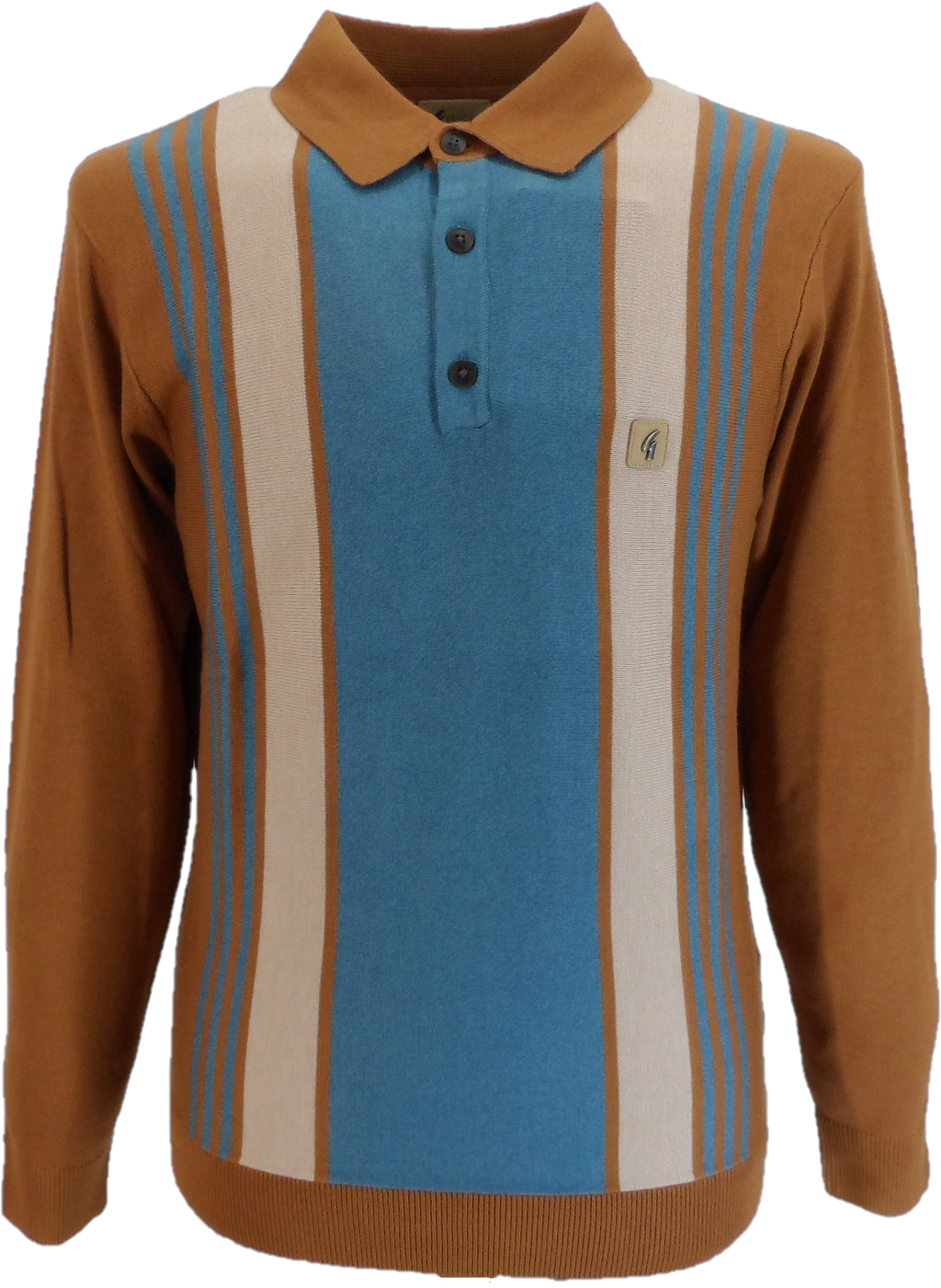 Gabicci Mens Walnut Brown Searle Multi Stripe Knitted Polo