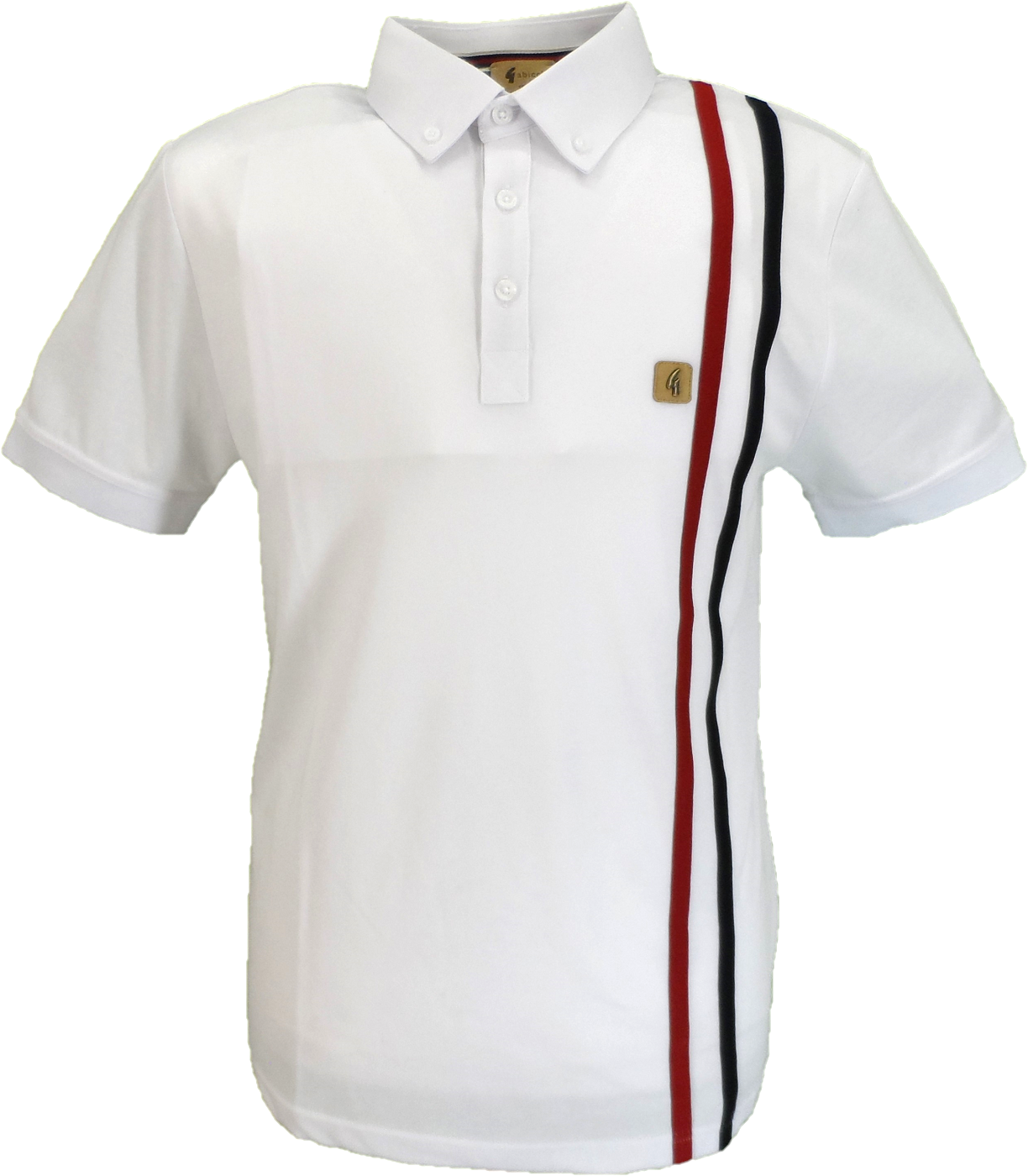 Classic Gabicci Vintage Retro Polo Shirt with 3 Button Fastening and a button down collar and Contrast Striping finished with the Classic G Logo