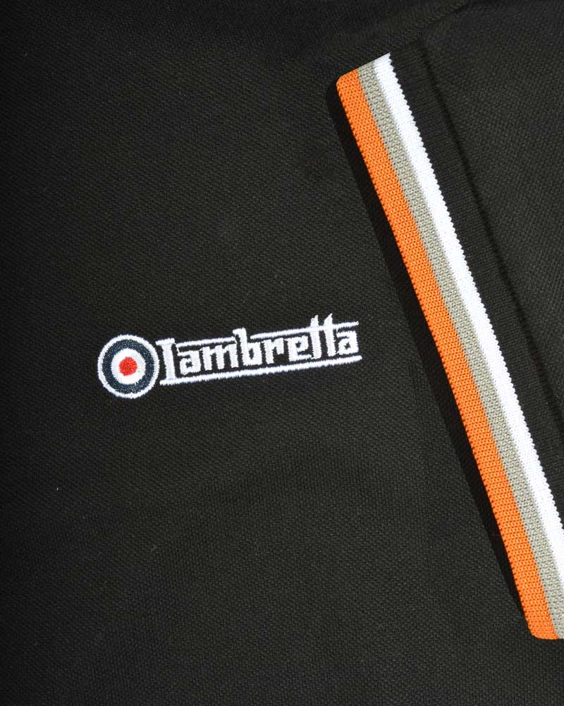 Lambretta tipped Polo Featuring embroidered block Lambretta logo to the chest and target embroidery to sleeve with a branded woven label to bottom ride side seam.