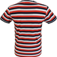 Madcap England Cassette Beatwave Tri-stripe T-shirt in Red/White/Navy.Crew neck tee.with1.5cm stripes.and Octopus embroidery on the left sleeve with sewn-on cuff.and a Retro ringer collar.