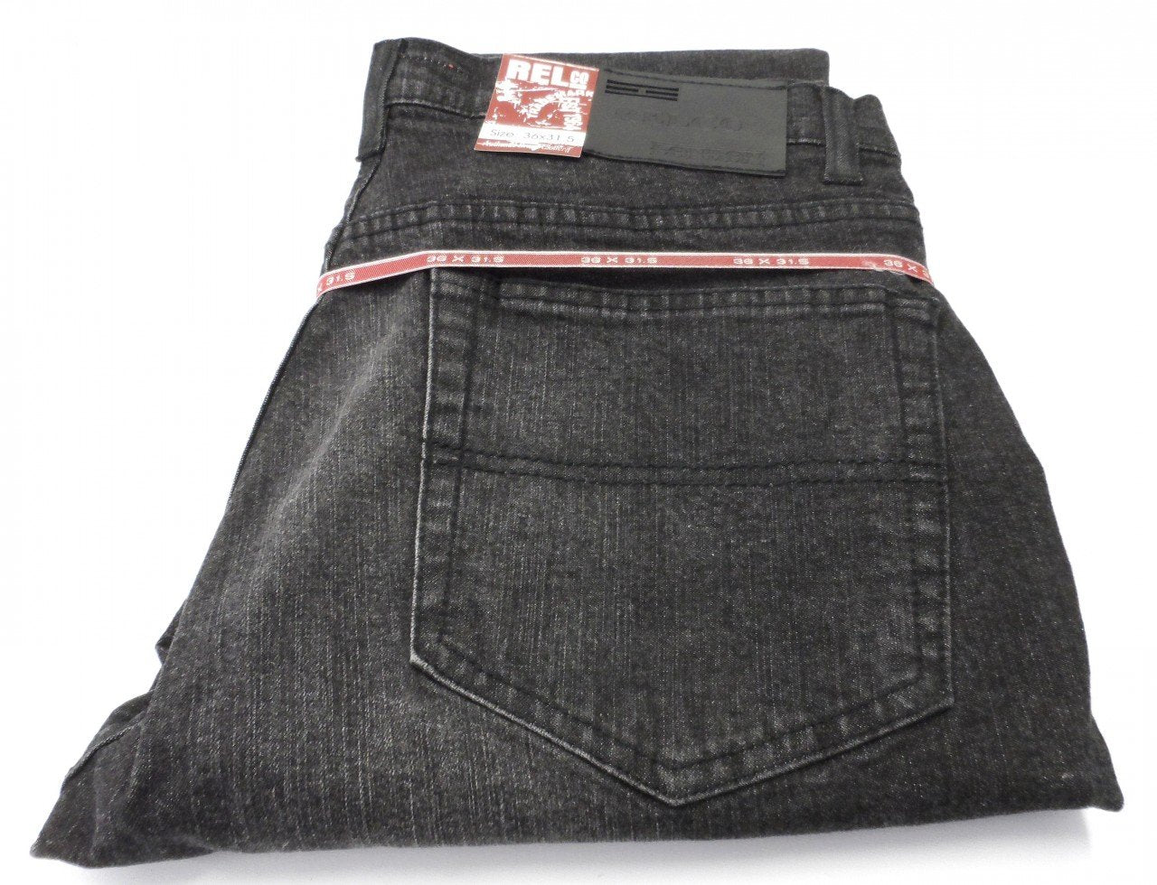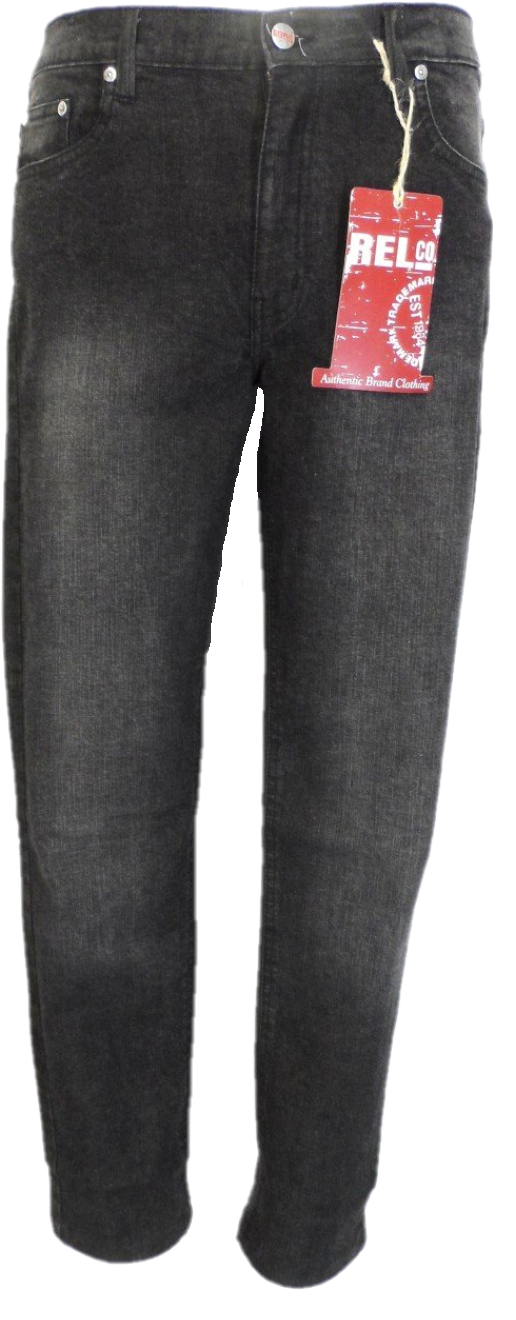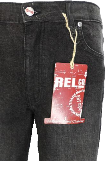 Metal button and YKK fly zip, 5 pockets detail on front, skinny fit with a 31.5-inch leg back Relco brand patch.