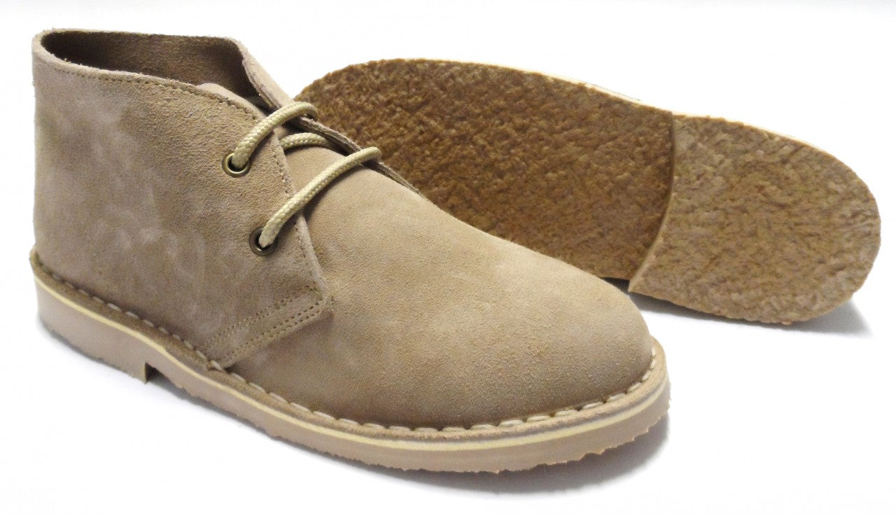 Real suede upper 2 eyelet lacing and a vulcanised rubber sole and a textile lining.