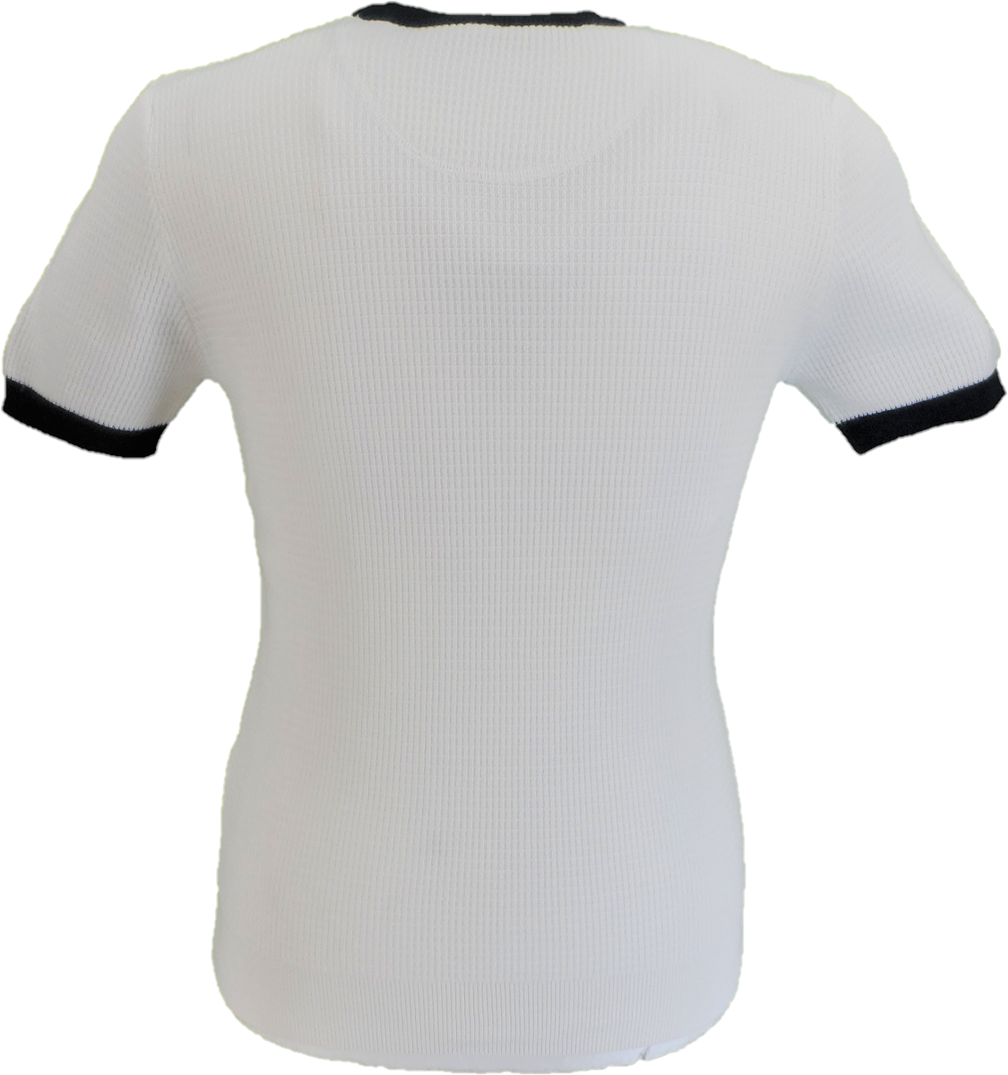 Cotton waffle fine gauge tee, with stripe detail to chest, with contrast collar and cuffs, with no exterior branding. Crafted from 100% Cotton