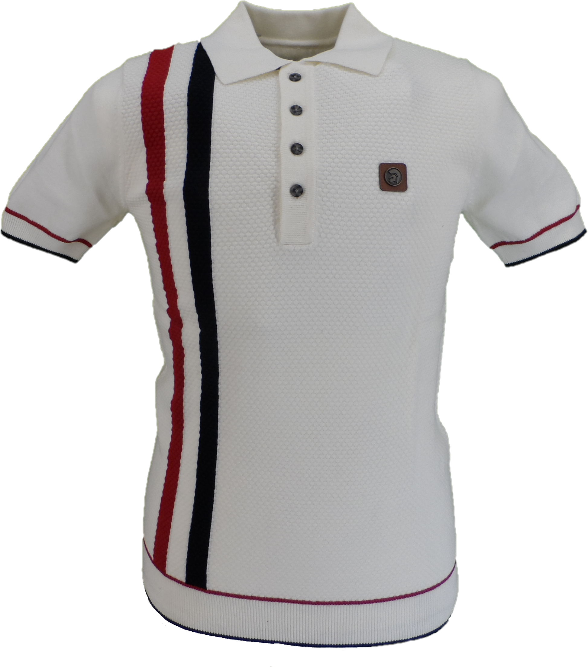 This fine gauge polo shirt is crafted from pure cotton, featuring a textured front panel accented with racing stripes. It includes a four-button placket with a discreet top button and loop, while tipping details highlight the collar, cuffs, and hem. Finished with a stylish Trojan metal badge on the chest, this shirt offers both comfort and distinguished design.